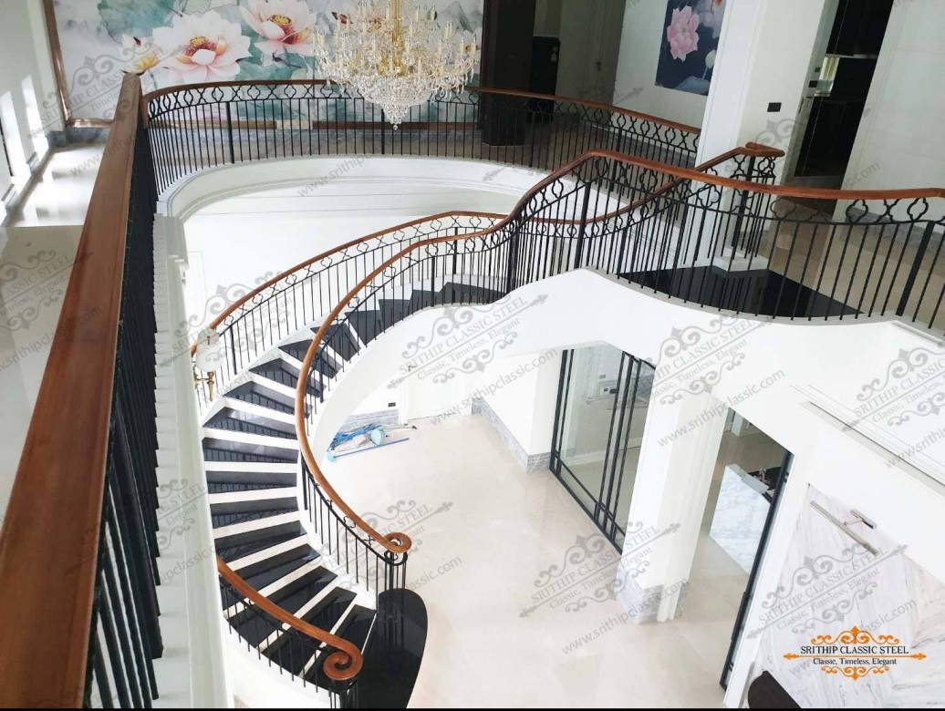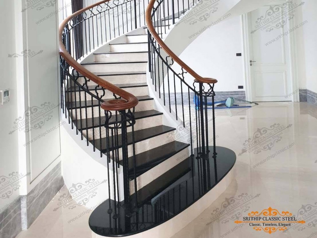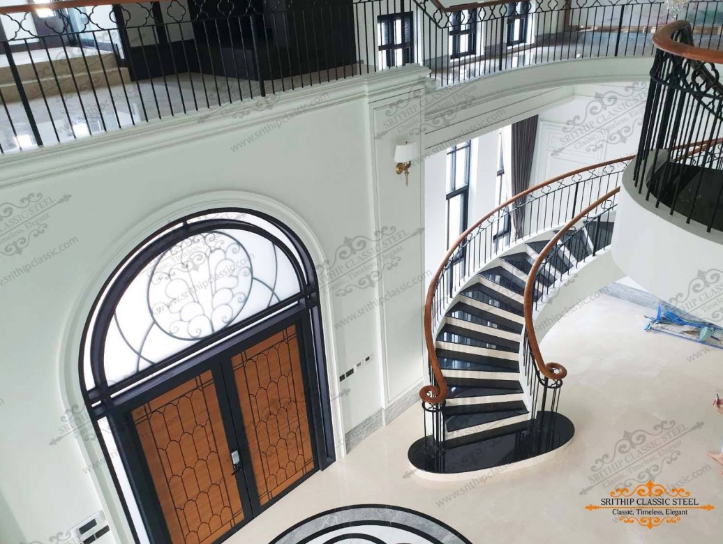 อัพเดท งานราวบันได ระเบียง และประตูเหล็กWrought iron โเคชั่น: หมู่บ้านวินด์มิลล์ปาร์ค Windmill Park บางนา งานบันได Modern Style เรียบง่าย แต่แฟงความทันสมัย Modern Style นั้นจะมีเอกลักษณ์ที่โดดเด่นอย่างชัดเจน โดยจะมีรูปแบบความเรียบง่าย และเน้นใช้รูปทรงแบบเรขาคณิต เส้นสายจะไม่มีลวดลายแบบอ่อนช้อยหรือเส้นโค้ง สวยงามแบบเรียบง่าย เรื่องสีที่ใช้ จะใช้เป็นสีดำล้วนเพื่อให้ดูตัดกับการตกแต่งบ้านโทนสว่าง ทัให้งานบันไดและระเบียงดูโด่ดเด่น งานประตูทางเข้าwrought iron Entrance door ที่ได้งานไม้เข้ามาติดช่วงกลางแทนกระจกเพื่อทำให้ดูอารมณ์อบอุ่นมากขึ้น โดยที่ช่องแสงเป็นงานกระจก เพื่อให้แสจากภายนอกเข้าไปได้ ไม่ให้ทึบจนเกินไป งานประตูชิ้นนี้มีแข็งแรง และปลอดภัย สวยงานดูเป็นลักษณะเฉพาะตัวได้อย่างดี